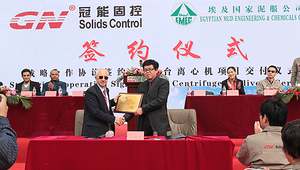 2015年3月12日,冠能固控與埃及國家泥服公司在中國北京冠能公司總部簽署戰(zhàn)略合作協(xié)議,為此冠能固控舉辦了盛大了簽約儀式,儀式也包括了一大批離心機(jī)的成功交付。