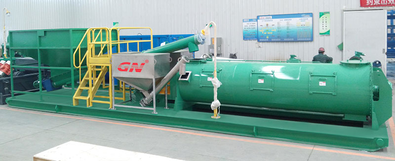 1、鉆屑儲(chǔ)料漏斗接收待處理的鉆屑和泥漿廢棄物,通過(guò)螺旋送料機(jī)按照預(yù)先設(shè)定的輸送量輸送到固化攪拌機(jī)中去。